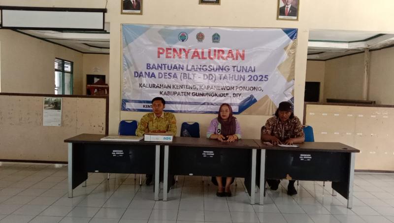 Pemerintah Kalurahan Kenteng, pada Hari Kamis, 16 Oktober 2025 menyerahkan Bantuan Langsung Tunai (BLT) Dana Desa (DD) Tahun Anggaran 2025 untuk tahap ke-X, bulan Oktober sebesar Rp. 300.000.00._ di Balai kalurahan Kenteng,