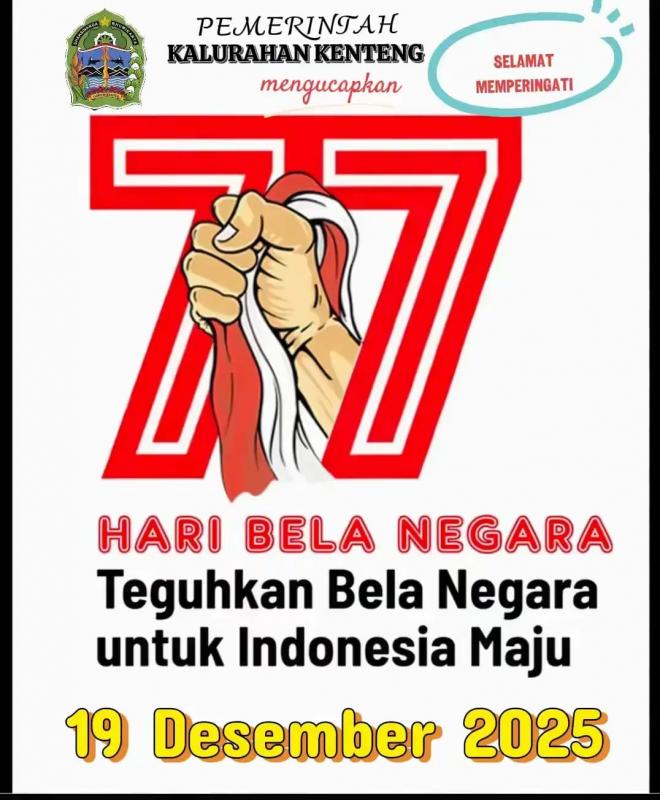 Pemerintah Kalurahan Kenteng, pada Hari Jum’at, 19 Desember 2025 melaksanakan Apel di halaman Balai Kalurahan Kenteng dalam rangka memperingati Hari Bela Negara (HBN) Ke-77 Tahun 2025.